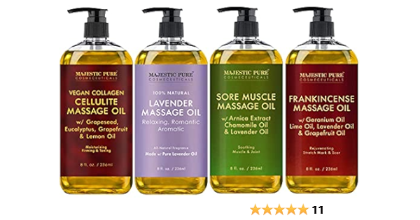 Amazon Com Majestic Pure Lavender Massage Oil Sore Muscle Massage Oil Frankincense Massage Oil And Cellulite Massage Oil Bundle 8 Fl Oz Each Health Household